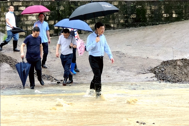 8月10日,涪陵区委书记王志杰到348国道天池隧道检查水毁灾情指导抢通。涪陵区交通局 供图