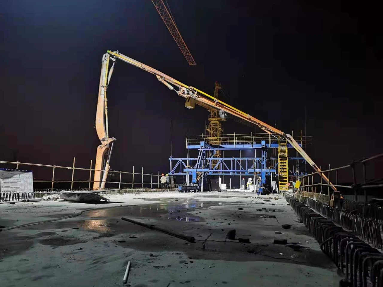 8月3日深夜,随着最后一车混凝土顺利浇筑江苏南沿江城际铁路跨G2京沪高速公路连续梁顺利合龙。