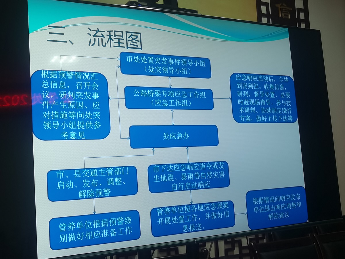 为强化部门联动,提升公路应急处置能力,确保公路安全畅通,7月28日,绵阳市交通运输局公路管理处举行国省干线公路应急预案推演。推演紧紧围绕公路应急抢险主业主责,对公路桥梁隧道、养护工程建设、地质灾害等公路突发事件展开。各推演科室首先陈述预案处置对策,参演人员根据假设目标现场提问,评委对每个预案环节进行点评。