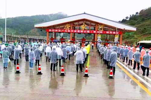 9月23日,广元至平武高速公路(青川段)建成通车仪式在青溪古镇隆重举行,北新路桥集团公司党委副书记、总经理朱长江介绍项目情况,市政协副主席、青川县委书记龙兆学,省交通运输厅总工程师王茂奎出席活动并致辞,市委副书记、市长董里出席活动并宣布通车。