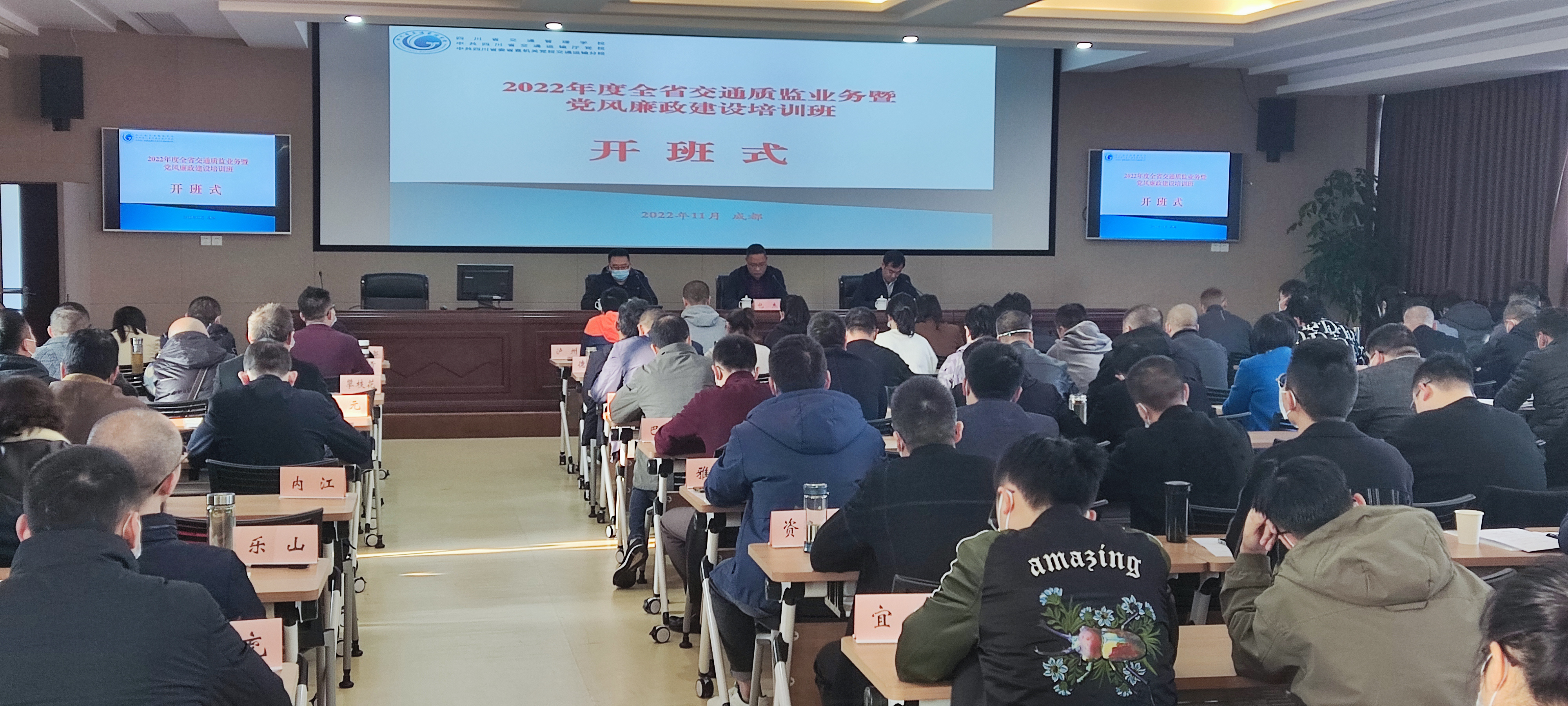 11月22日,省交通质监站举办的2022年度全省质监业务暨党风廉政建设培训班在成都开班。来自各市(州)交通运输局分管质监工作领导、质监机构负责人、监督工程师共计120余人出席开班仪式。