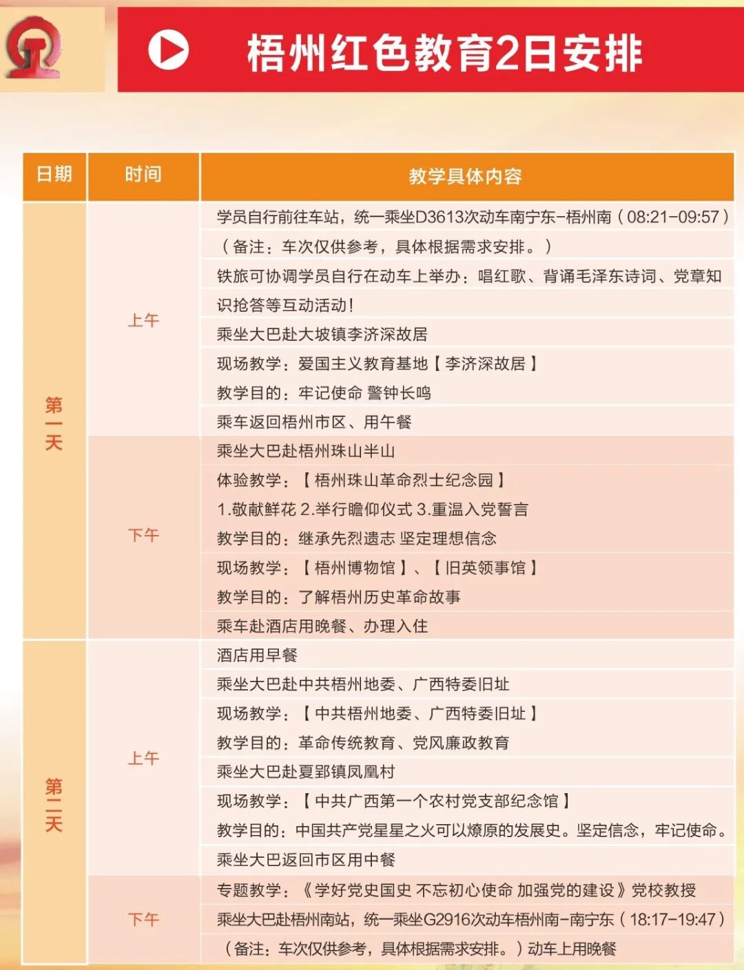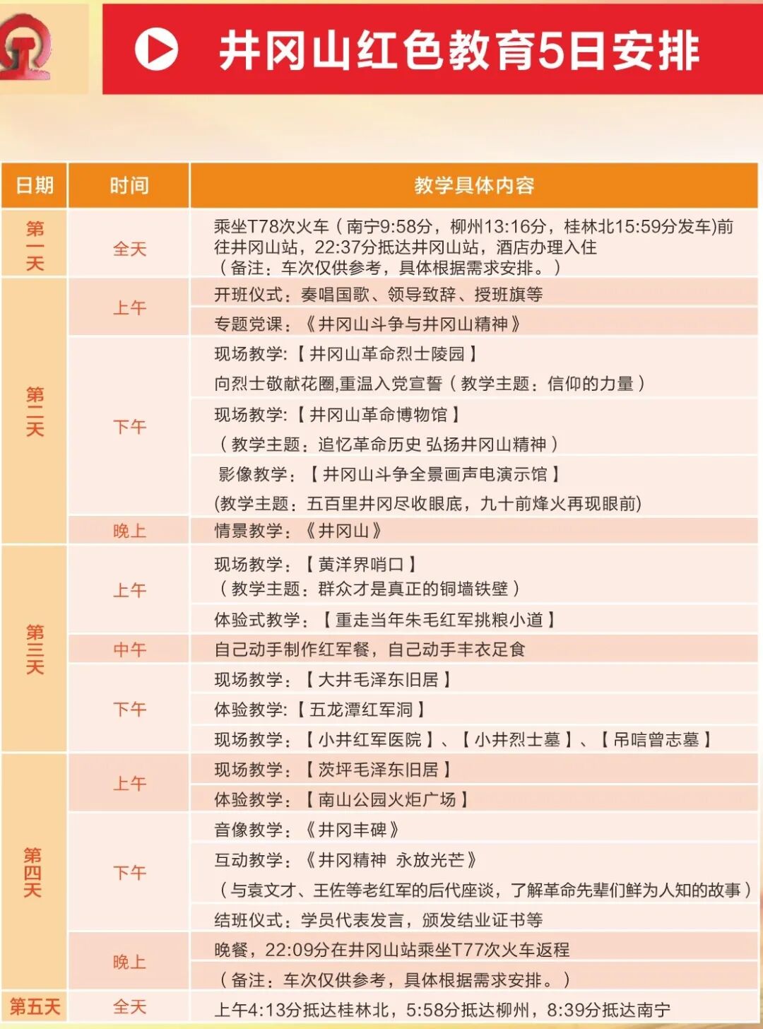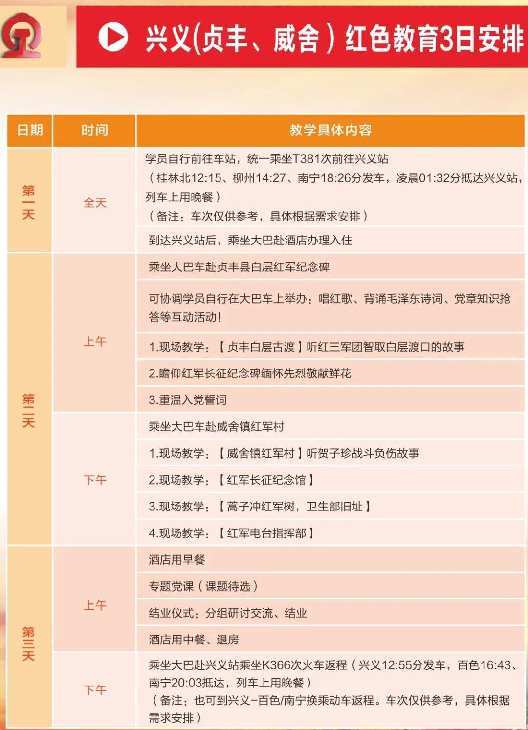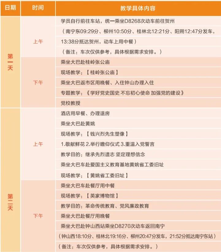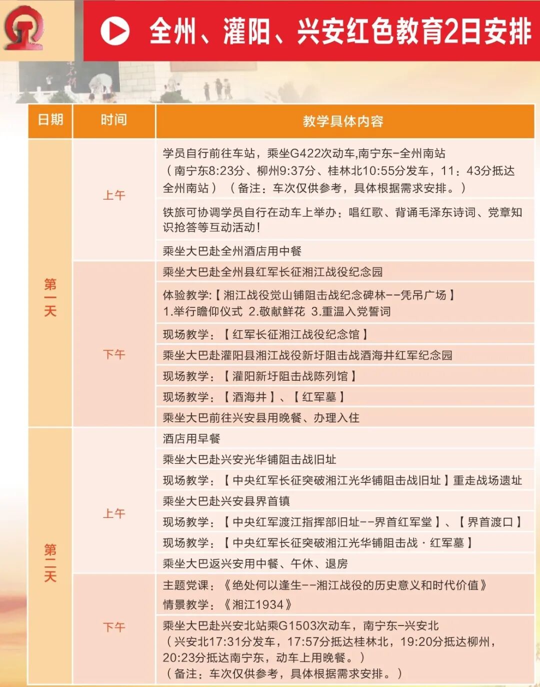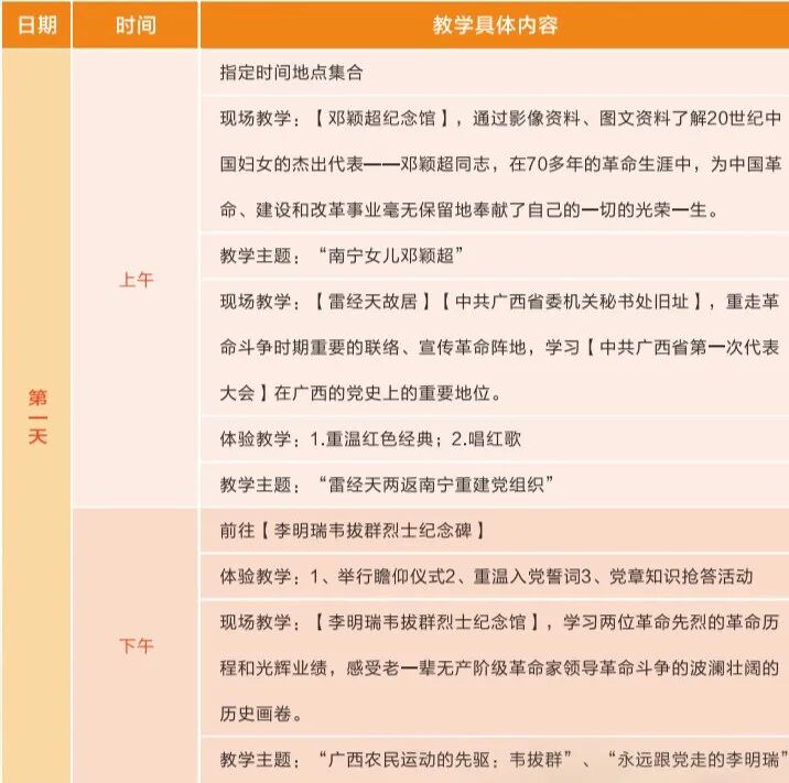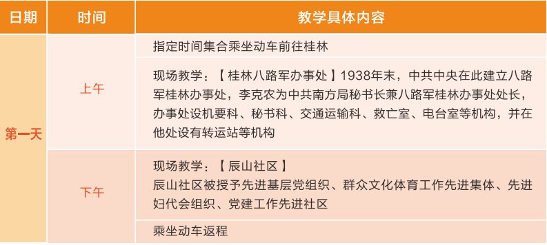 (1)推荐线路1:桂林红色教育1日安排
