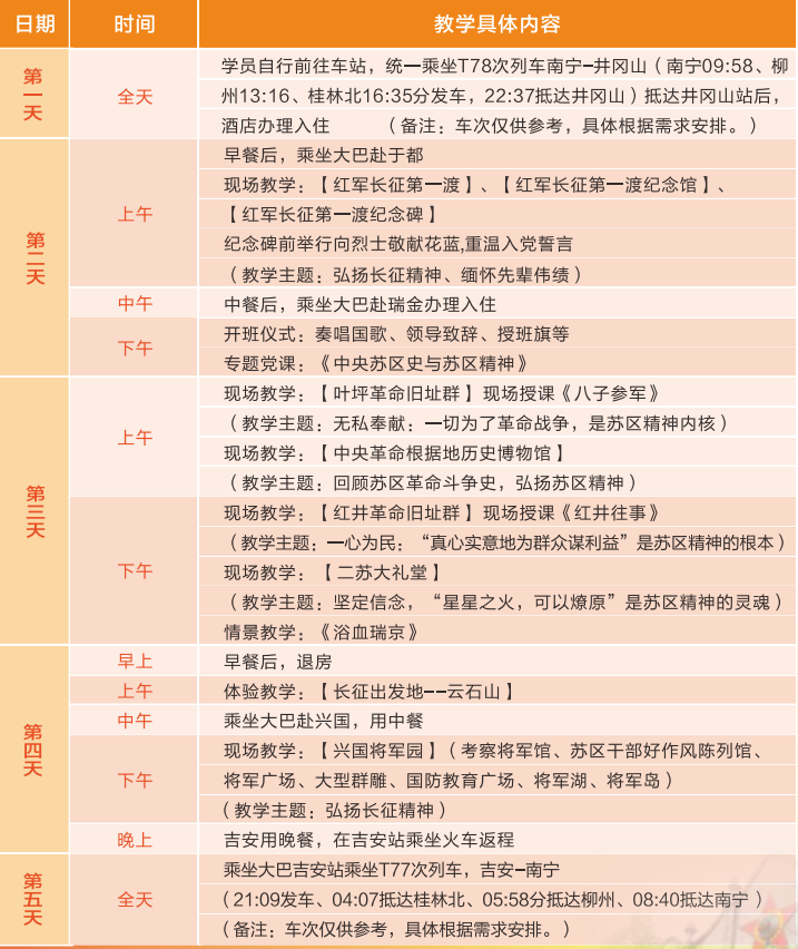 推荐线路1:瑞金红色教育5日安排
