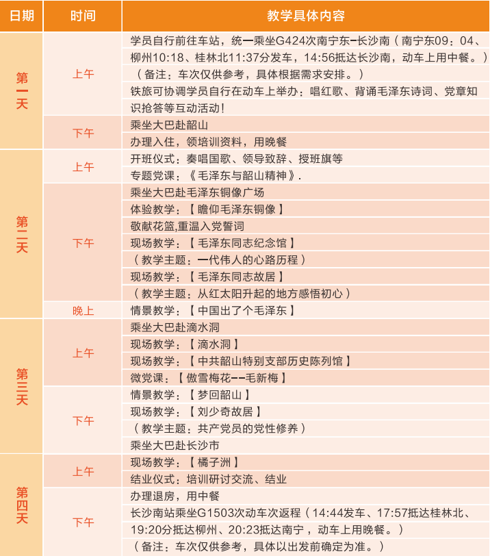 推荐线路1:韶山红色教育4日安排