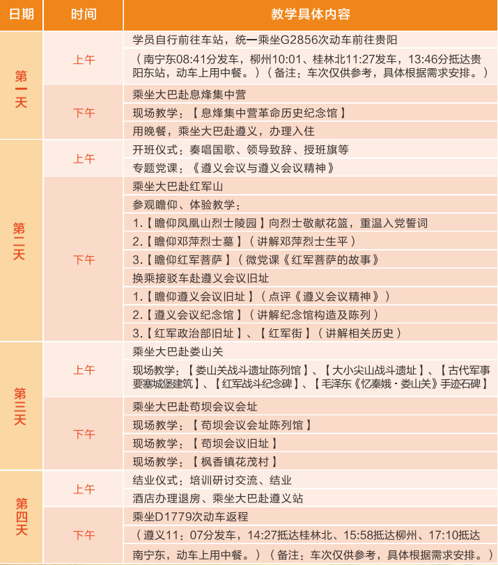 推荐线路1:遵义红色教育4日安排