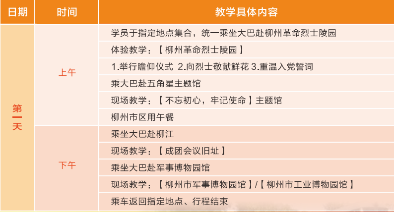 推荐线路1:柳州红色教育1日安排