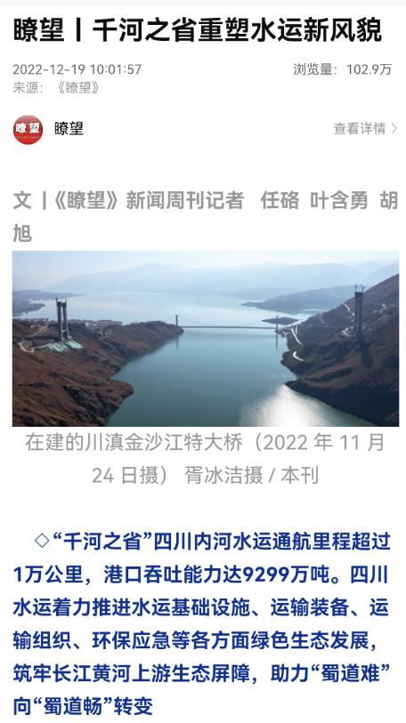 新华社《瞭望》周刊关注报道四川水运发展新风貌