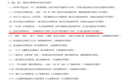 乐山市沙湾区渡运安全管理经验评审结果获交通运输部海事局公示