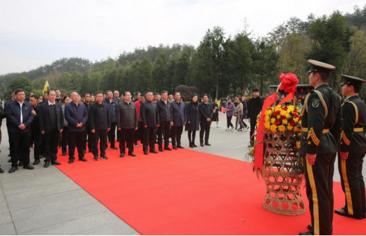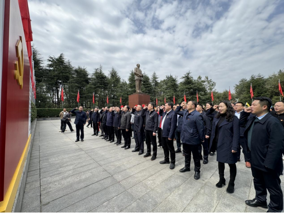当日上午,在毛泽东铜像广场,参与活动的党员干部整齐列队,瞻仰毛主席铜像并敬献花篮,表达对伟人的无限敬意和深切缅怀。