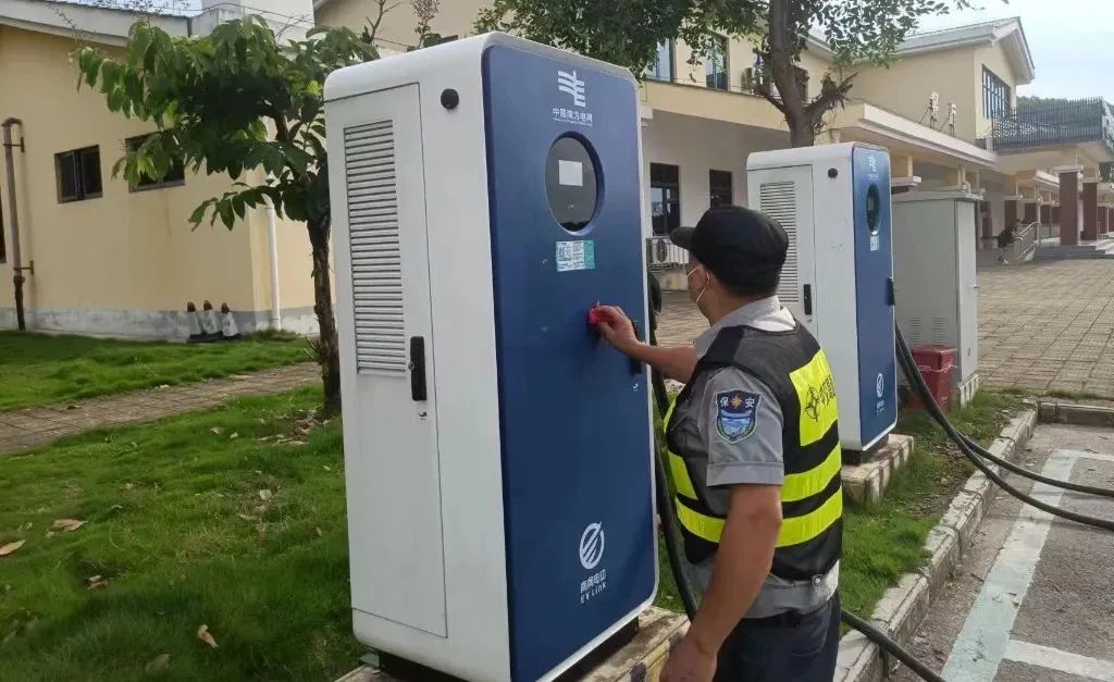 工作人员每日对充电桩设施进行保洁维护。(贵隆高速综合管理部 供图)