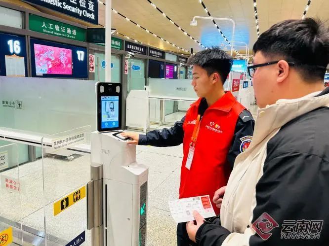 春运期间,长水青年志愿者们在积极践行民航局“真情服务”及昆明机场“首乘首帮”理念的同时,着力把好安全关,提前接受安全应急培训,主动在现场服务工作中查找消除安全隐患。他们及时提醒旅客自查“三超”行李,引导旅客自弃违禁物品,并在客流高峰期积极协助安检人员加强待检区维序、引导、分流、管控,遇突发事件时及时疏散旅客。积极为无人陪伴过检的儿童和老人提供帮助,为晚到及出行不便的旅客贴心服务,在守牢安全和真情服务之间拿捏有度,有效确保了安检现场井然有序、旅客过检舒心顺畅。
