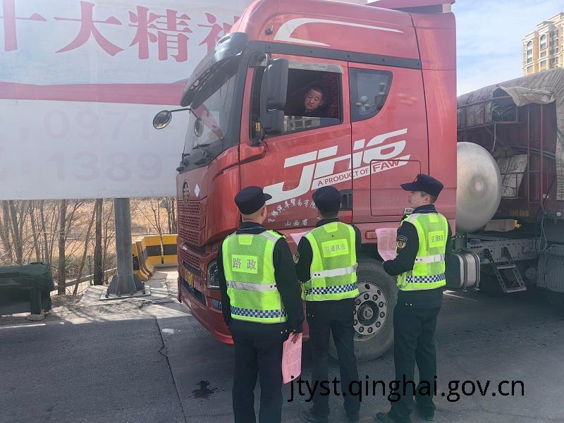 “宣治”结合,超限治理更进一步。为推动超限超载治理工作的深入开展,巡查结束后,路政执法人员在乐都收费站开展联合治超工作,通过向广大司乘人员宣传超限超载运输的危害性,提高司乘人员对超限治理的认识和重视程度,对货运车辆进行检测,有效遏制了违法超限运输的势头。