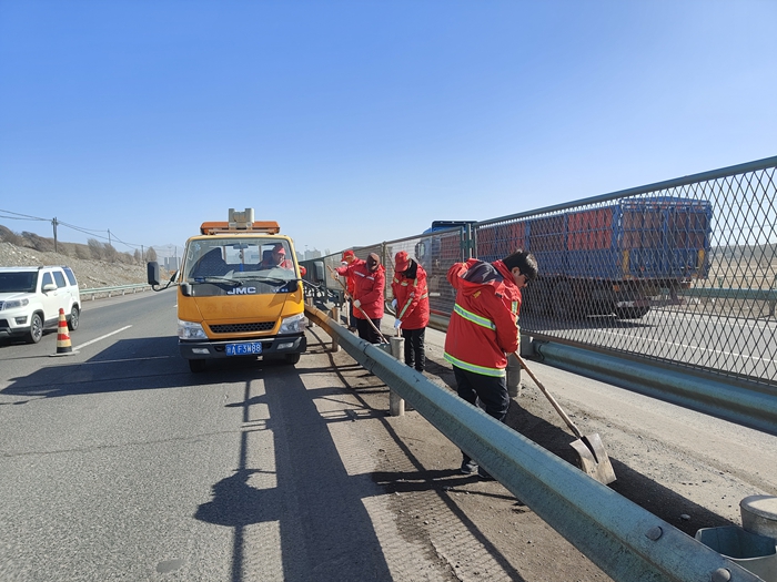 一是加强日常养护,开展路容路貌专项整治。重点开展春融期路面病害修补和路面保洁,采取机械清扫为主,人工清扫为辅的方式,对全线管养公路进行保洁作业,重点对一级路中央分隔带、沿线交叉路口和堆积物进行清理,针对山体碎落、塌方迅速清理,确保路容路貌干净整洁。