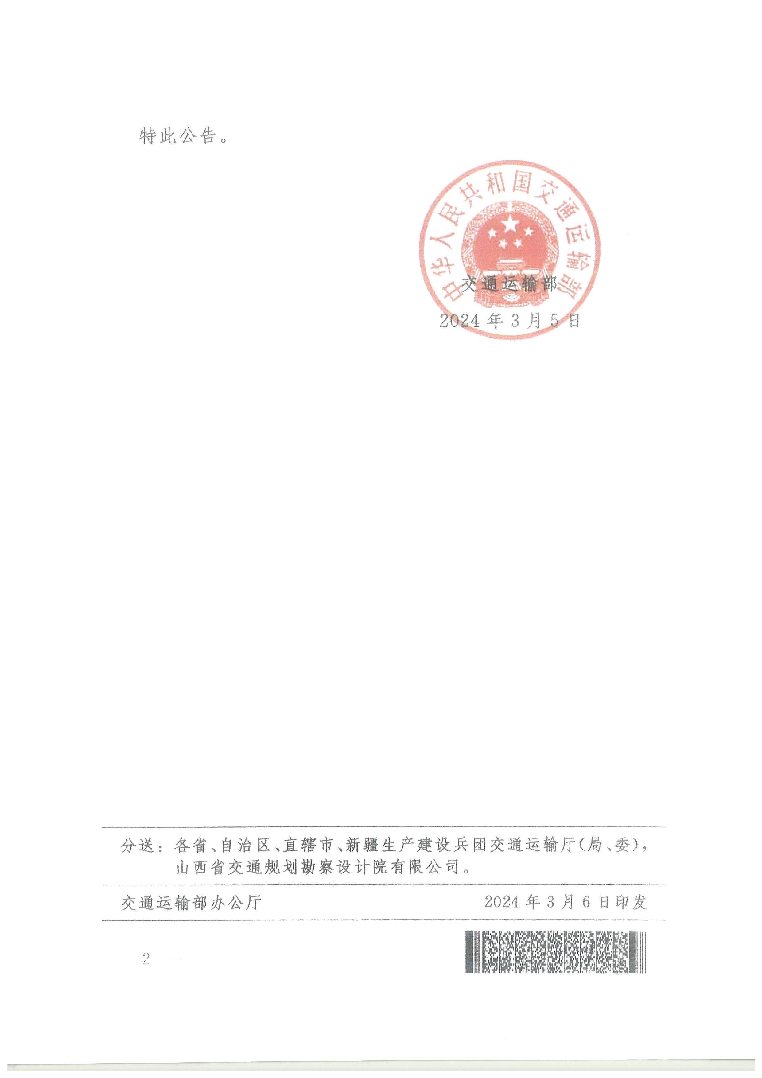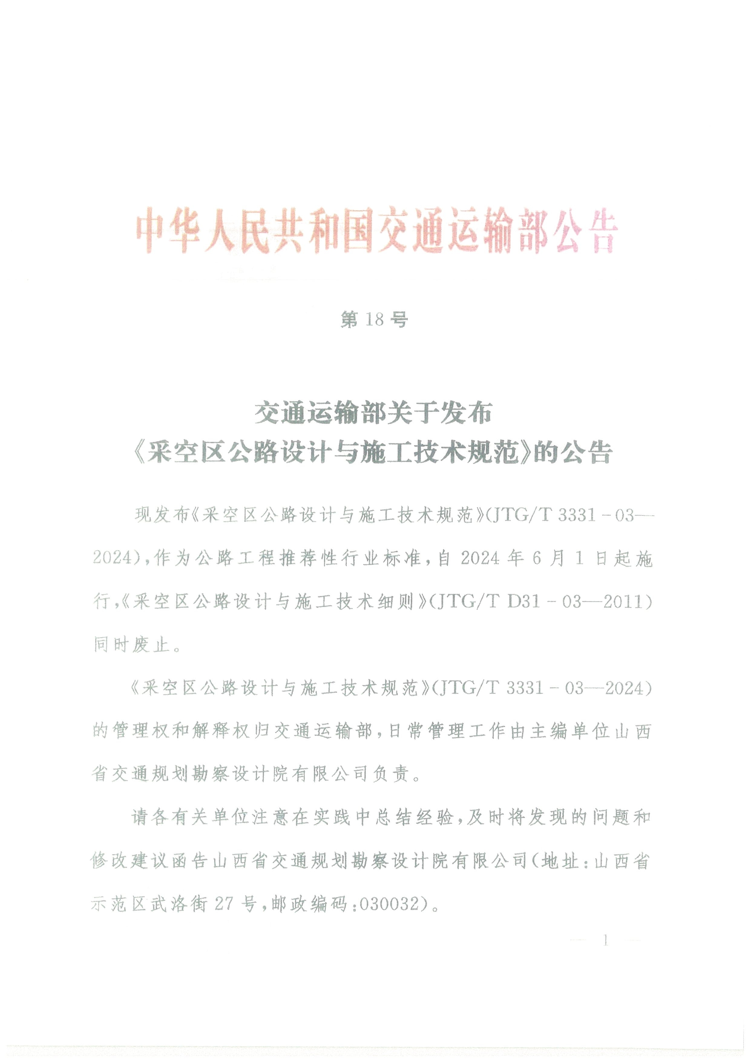 重庆市交通运输委员会关于转发交通运输部关于发布《采空区公路设计与施工技术规范》的公告