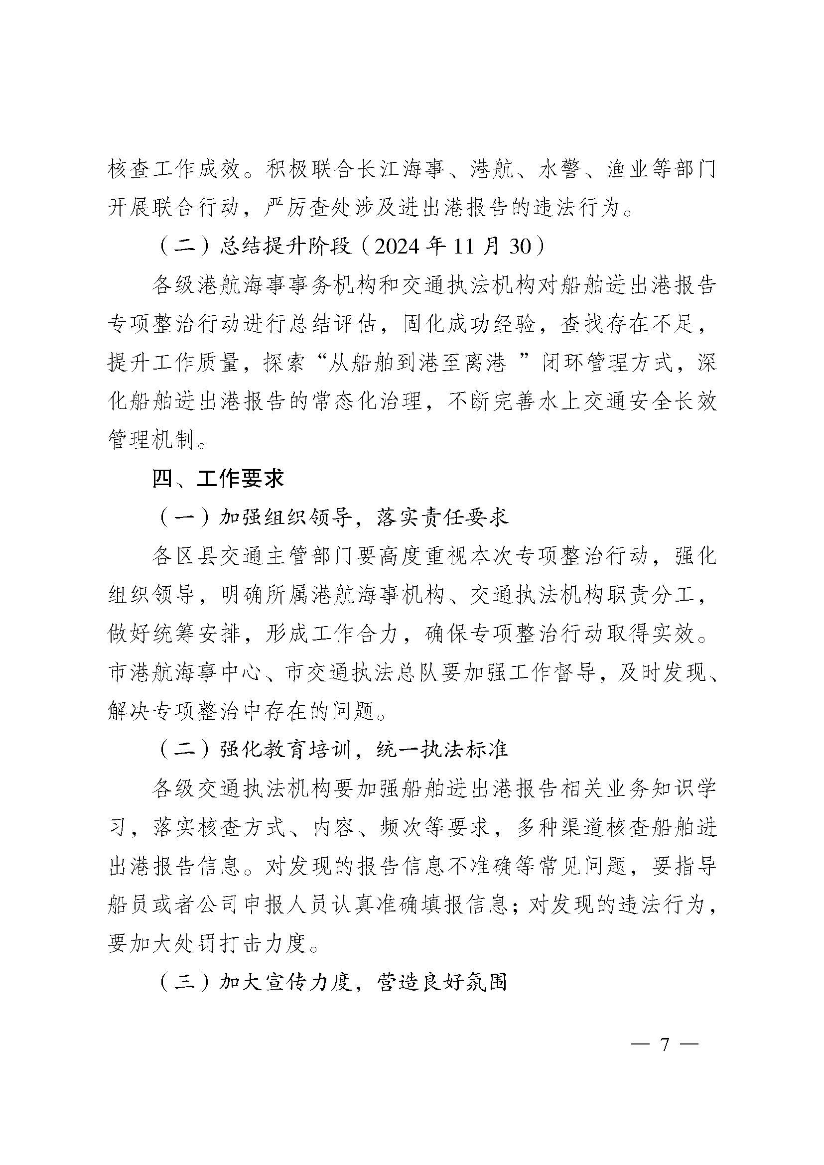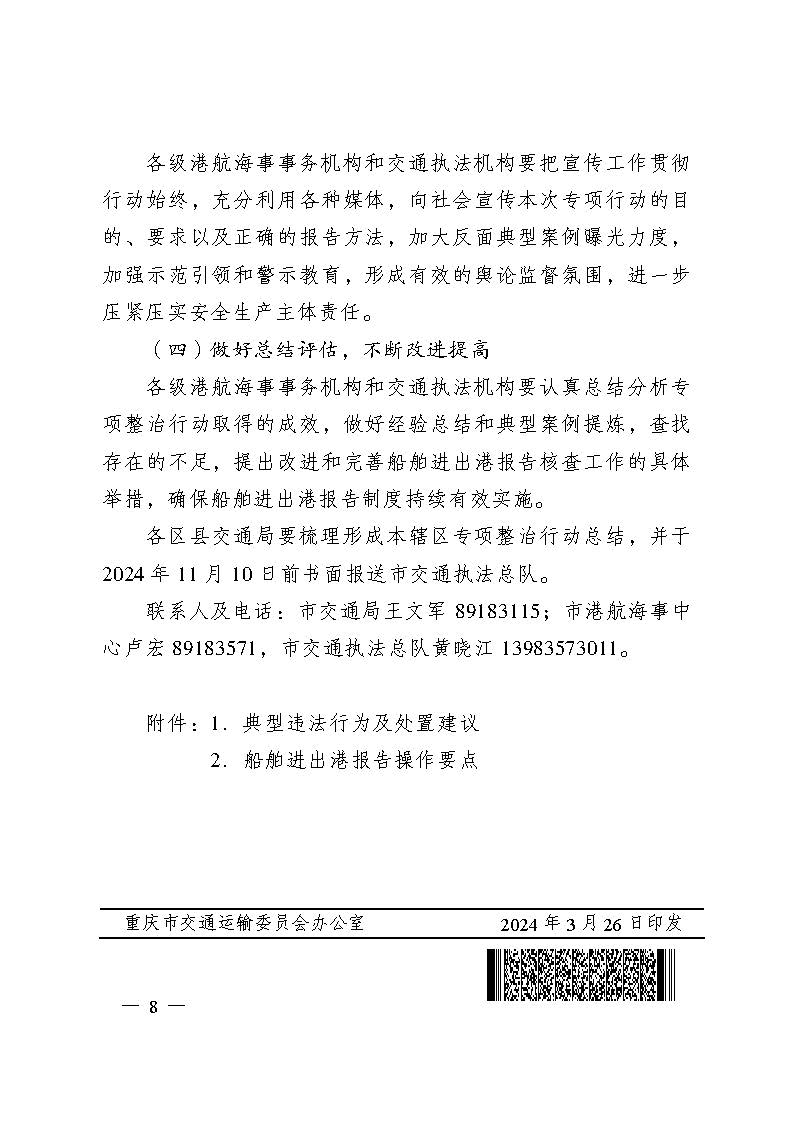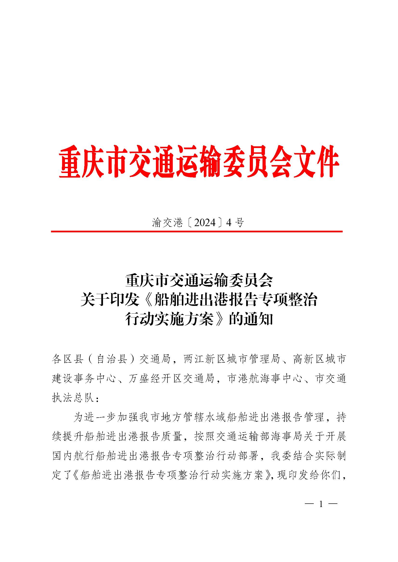 重庆市交通运输委员会关于印发《船舶进出港报告专项整治行动实施方案》的通知