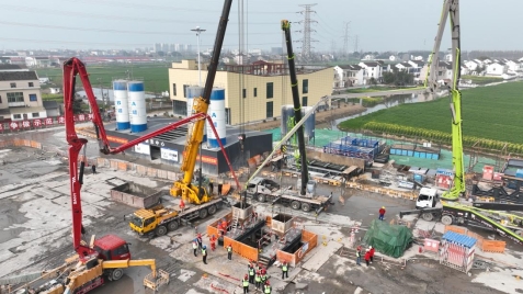 张靖皋长江大桥南航道桥南锚碇基础为世界最大地连墙锚碇基础,首创支护转结构复合地连墙基础,由32个互不相通的小隔舱形成复合式围护结构,基坑开挖深度达52米,在地下逐步连接形成一座回字形地下“城堡”。此次首件小隔舱长9.25米,宽4.25米,水下封底高度达10米,浇筑方量400立方米。32个小隔舱预计今年8月全部浇筑完成。