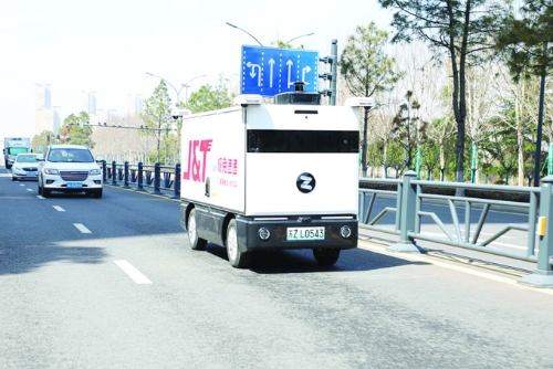 【扬子晚报】连云港首辆无人快递车亮相街头