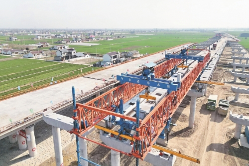 【新华日报】东兴高速东延工程4标段建设现场,施工人员正在实施架梁作业