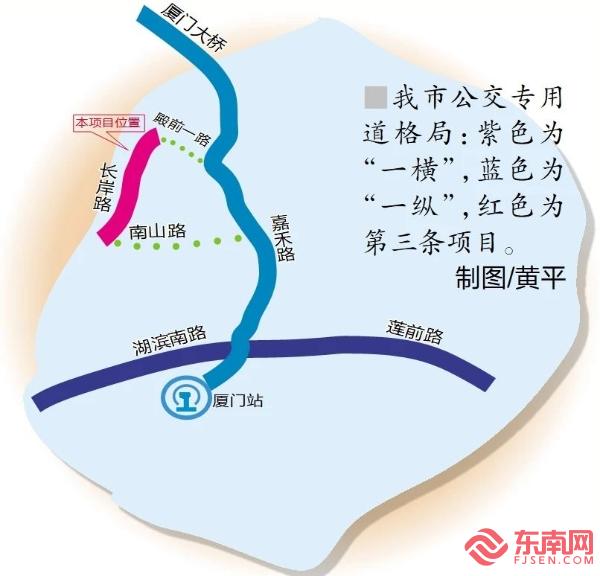 厦门目前已建成“一横一纵”的公交专用道格局(黄平 供图)