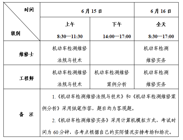 2024年度机动车检测维修专业技术人员职业资格考试定于6月15日至16日在(福州市)举行。现就有关事项公告如下: