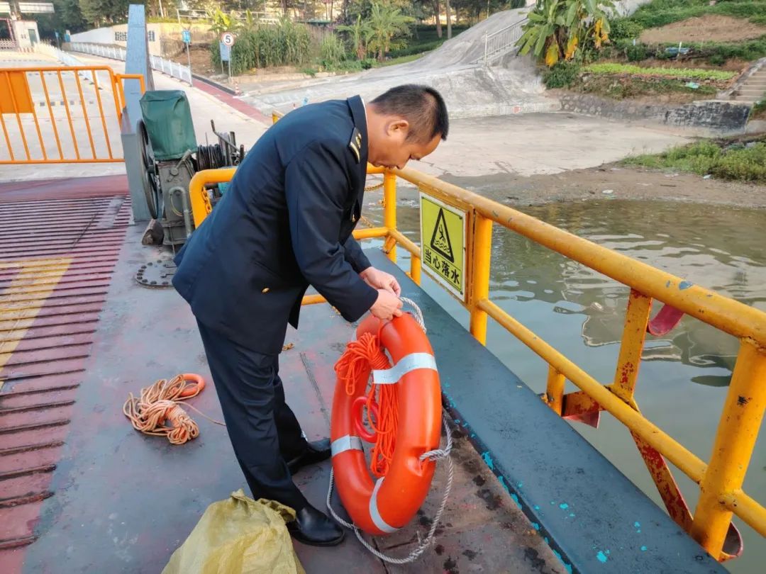 南宁江南公路养护中心工作人员检查渡船安全设施。