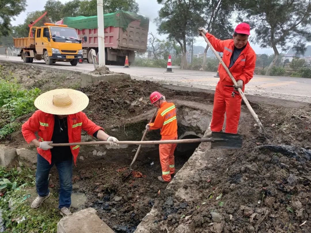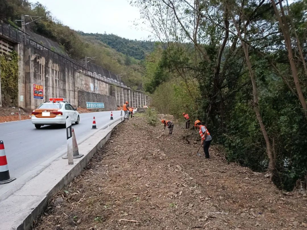 北流公路养护中心组织养护工人在管辖的国道241线、国道359线、省道205线、省道508线等国省干线公路,开展涵洞、水沟等排水系统的疏通工作,清理涵洞或沟渠中的淤泥、枯枝烂叶、垃圾等堵塞物,检查维护排水设施,及时修复、更换损坏部分。同时,修剪遮挡行车视距的竹树,修补出现裂缝、坑槽等病害的路面,全力做好春耕备耕期间的运输服务保障工作。