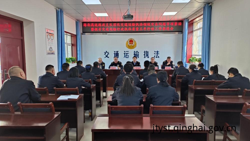 为深入贯彻落实省路政总队《提升行政执法质量三年行动工作方案(2023年-2025年)》《深化交通运输执法领域突出问题专项整治工作方案》,传达省路政总队推进会上的工作要求,动员支队上下行政执法人员深入开展提升行政执法质量三年行动,全面提升本单位行政执法质量和效能,3月29日,海北高速路政支队召开提升行政执法质量三年行动推进会。