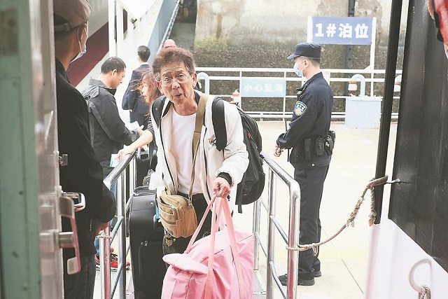 4月1日,台胞在南安石井码头登船前往金门。(记者 王敏霞 通讯员 王文 摄)