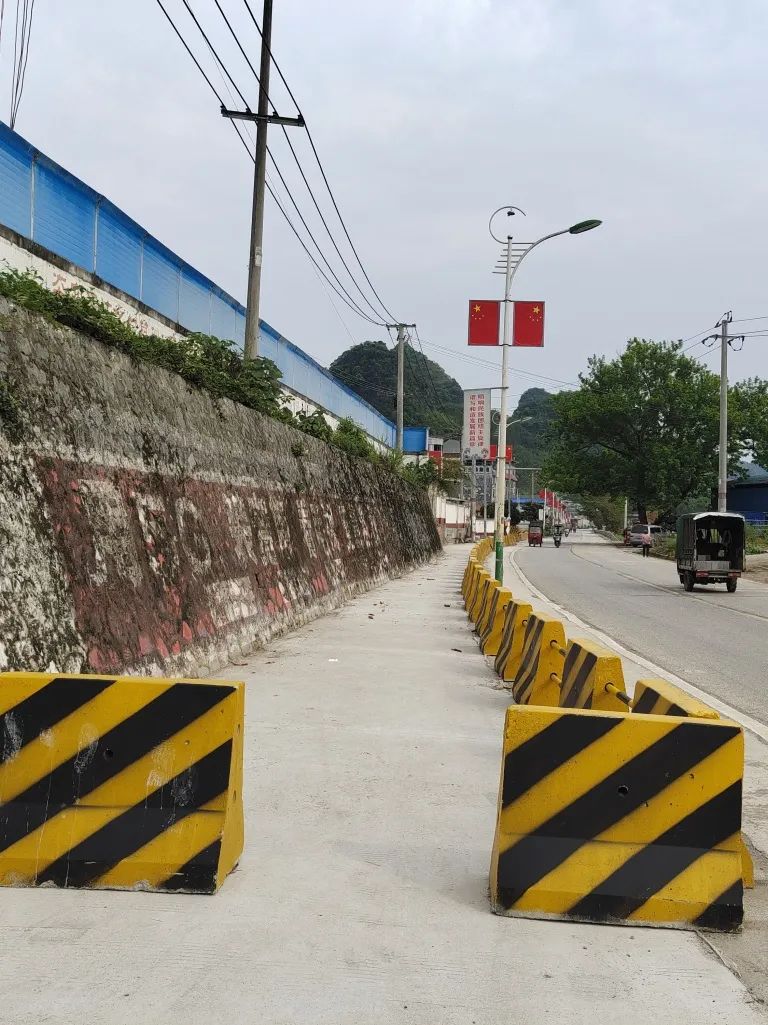 据了解,欧洞小学主要出入口及周边道路与忻城公路养护中心管养的省道305线K84+500~K84+638段相交,该路段交通繁忙,上下学高峰期过往人流、车流相互交织叠加,人车混行情况严重。在了解到欧洞小学师生面临的出行困扰后,忻城公路养护中心为该小学设计、建造人车分离安全设施并硬化附属路肩。该工程采用20厘米厚级配碎石+15厘米厚C30混凝土面层的路肩硬化方案,共硬化路肩135米,总硬化面积约570平方米,增设混凝土防撞墩68座,有效提升路肩的承载能力和稳定性,确保师生安全通行。