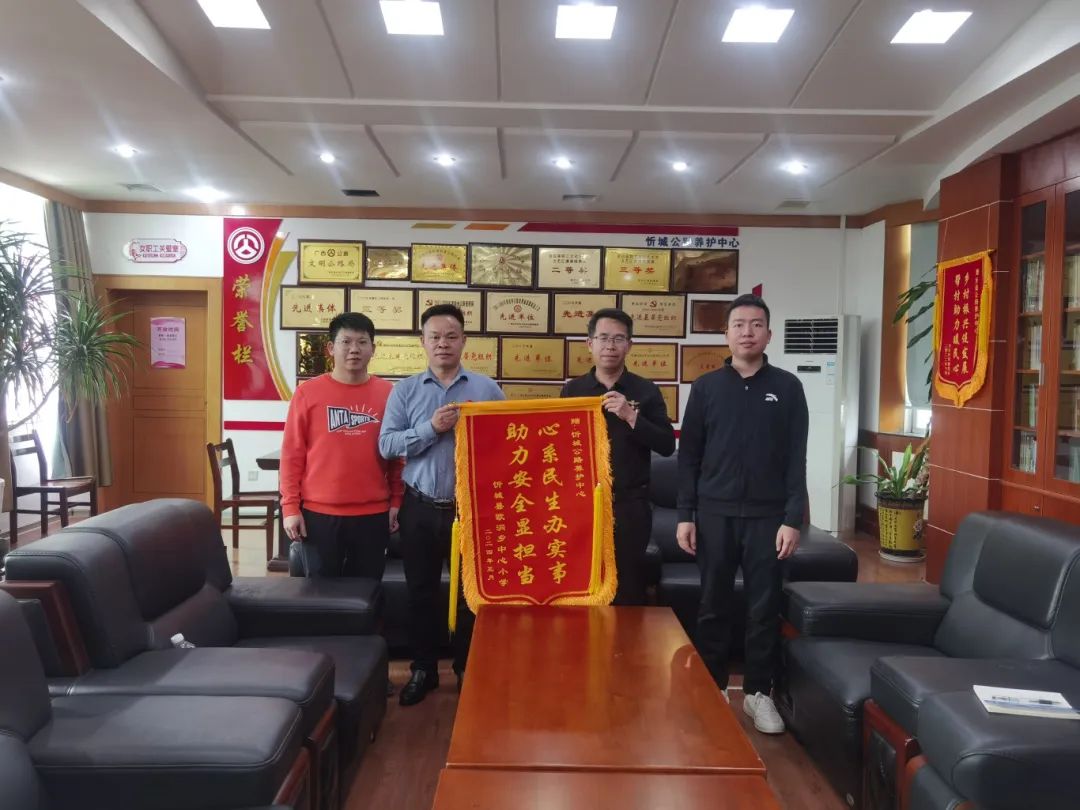 欧洞小学向忻城公路养护中心赠送锦旗表示感谢。