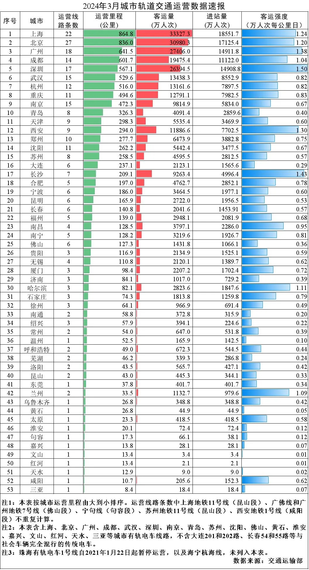 2024年3月城市轨道交通运营数据速报