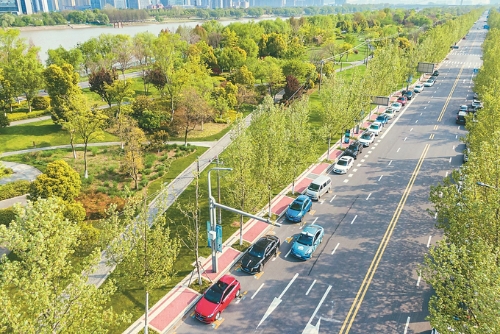 日前,自动驾驶网约车在南京江心洲开放运行,全岛设有39个点。每辆自动驾驶网约车均配有一名安全员,乘客可以免费乘坐,感受未来出行的新体验。图为4月9日,正在江心洲行驶的自动驾驶网约车。 记者 蒋文超 摄