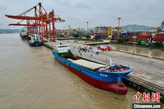 4月9日,“鑫龙996号”货轮停靠在马尾青州码头。福州马尾—马祖海上货运直航航线当天开通。(中新社记者 王东明 摄)
