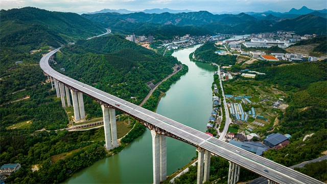大桥采用双向六车道高速公路标准建设,桥位跨越G205国道、鹰厦铁路、沙溪河及月亮湾景区等。大桥主桥上部结构采用主跨176米的钢桁组合连续刚构,为目前世界上同类型桥梁最大跨径,丰富了山区大跨径梁桥桥型方案;设计采用安全、经济、耐久、美观的大跨钢桁组合梁连续刚构桥结构体系,充分发挥了组合结构的优势;全桥为无预应力结构,结构更加轻盈、跨越能力更强,解决了传统大跨径预应力混凝土连续梁桥的下挠、开裂等难题;从建设、设计、施工、管养全过程实现了BIM技术正向数字化全面应用,开创行业之首,实现了由传统桥梁到“数字桥梁”的转变,引领行业全新变革,为我国由桥梁大国走向桥梁强国添砖加瓦、助力前行。