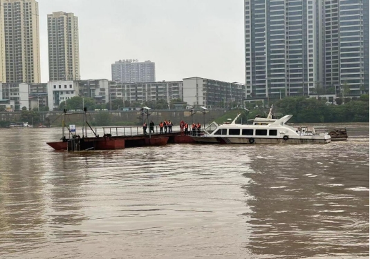 4月7日9时许,永州市水运事务中心接到冷水滩舟桥管理部门求救电话,称一截舟桥由于水流速度较快,漂移至潇湘大桥下游大概500米处。此时冷水滩水位到达94.7米,接近警戒水位95米,水流湍急,舟桥还在继续漂移,即将给下游桥梁和电站带来安全威胁。