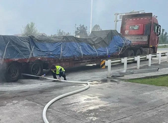 齐心协作,化险为夷经现场了解情况,得知该车装载货物为非化学品,可接触水源后,该收费站工作人员立即同步连接至消防水带进行灭火降温,经过10多分钟紧急救援成功将明火扑灭。随后,消防人员抵达现场再次对货车进行降温处理,防止复燃。