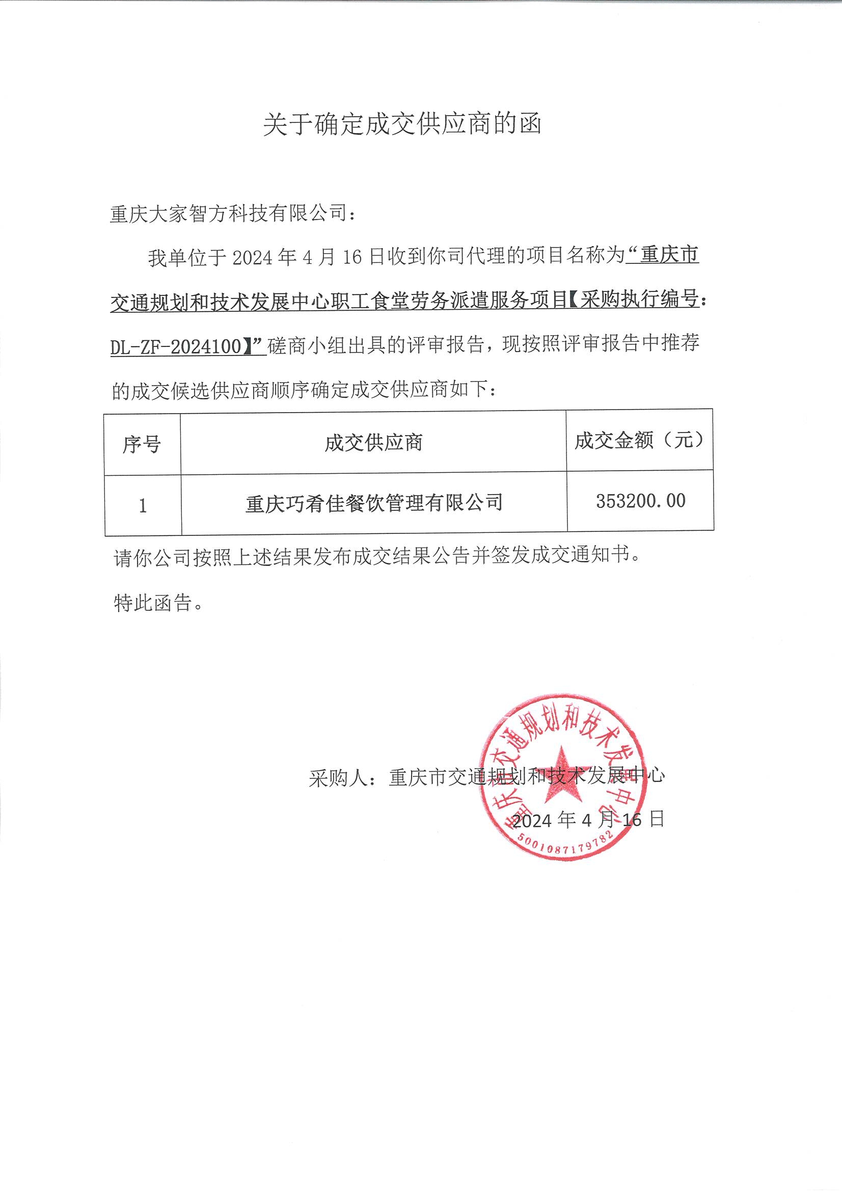 重庆市交通规划和技术发展中心关于食堂劳务派遣服务项目中标公告