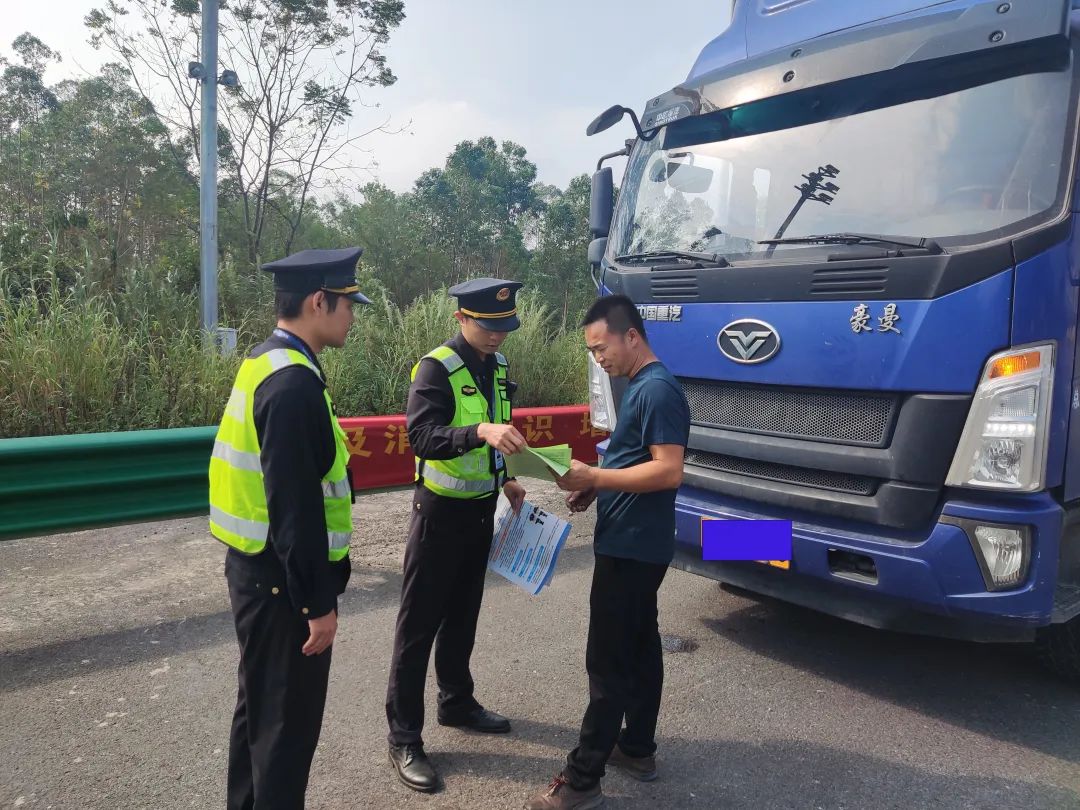 执法人员向货运司机开展普法宣传。(陶俊霏 摄)