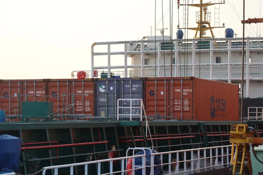 3月11日,84标箱卷钢货物在钦州港码头完成装船,通过“两湾快航”发运至广东地区。(刘付镭 摄)