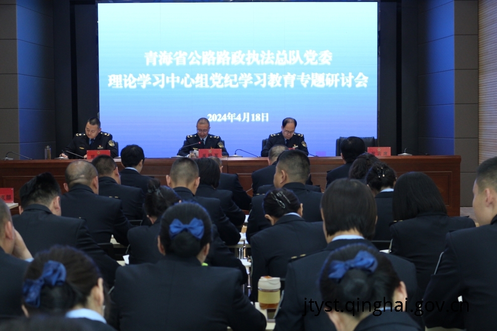 4月18日下午,省路政总队党委主要负责人主持召开党委理论学习中心组(扩大)党纪学习教育专题研讨会,会议以视频形式召开,在宁总队党委班子成员,部分支队党委书记、纪委书记、党支部书记,总队机关全体工作人员在主会场参加会议,各支队、各大队(站)党员干部在分会场参会。会上,总队党委班子成员,湟源路政支队、海南高速路政支队党委书记,西宁高速路政支队纪委书记,以及大通路政大队党支部、总队机关第一党支部书记等8名同志结合岗位职责,围绕“学党纪、明规矩、强党性”主题作了交流发言。