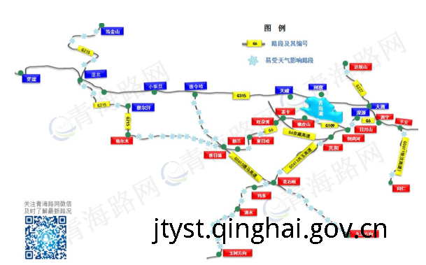 根据近年数据分析,易受降雨雪路段主要集中在G227张孟线扁都口至城关段,G0615德马高速花久段,G0613西丽高速共玉段花石峡至玉树等路段。(详见下图)