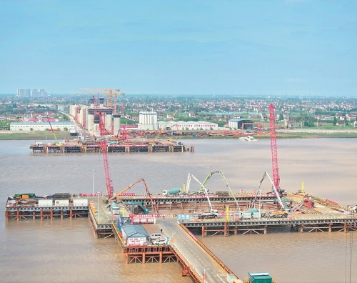 【新华日报】崇启公铁长江大桥3号、4号主墩承台混凝土全部浇筑完成