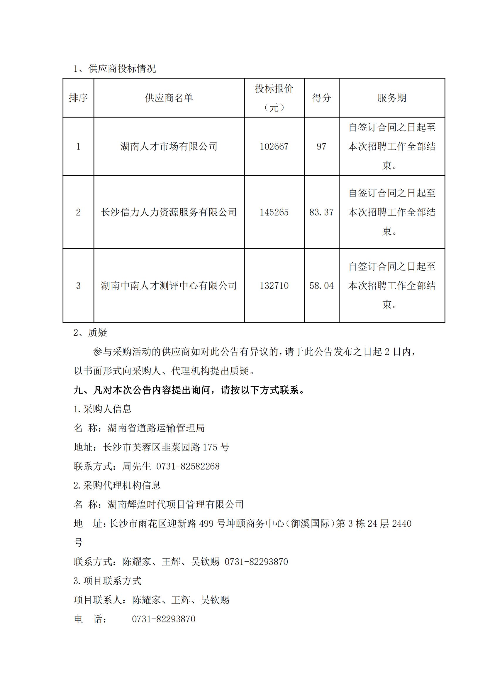湖南省道路运输管理局2024年公开招聘工作服务采购成交公告