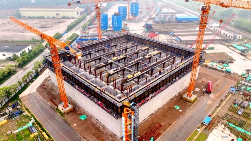 张靖皋长江大桥北航道桥北锚碇沉井接高完成