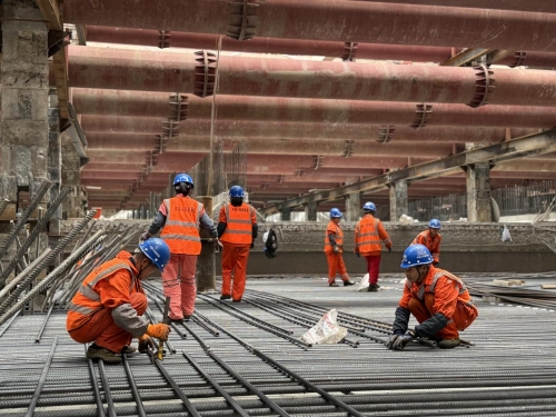 基坑地下水极为丰富,且开挖深、规模大,为确保基坑稳定、控制地表沉降,项目建设团队多次组织召开施工方案专题讨论会,并根据现场推进情况部署各阶段监测和施工重点任务。施工过程中,强化精细化管理,严把材料验收关,落实人员分区域24小时盯控作业面,通过基坑自动化检测、钢支撑伺服、智能门禁等系统及智慧安全风险管控平台,实时远程监控现场人、机、料。浇筑过程中,利用预埋传感器实时监控混凝土温度,严格遵守技术规范,通过点对点盯控振捣,确保混凝土振捣密实,保证了浇筑质量。(省交建局)