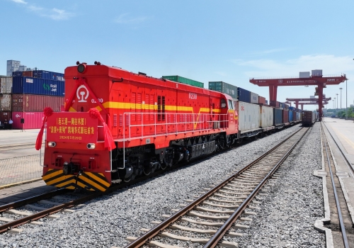 5月29日,首列连云港—阿拉木图“滚装+班列”跨境多式联运专列从中哈(连云港)物流合作基地缓缓驶出,这列满载50个大柜跨境商品车的中欧班列7日后将抵达阿拉木图。