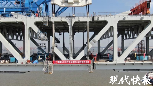 【现代快报】世界最大跨度斜拉桥吊装完成