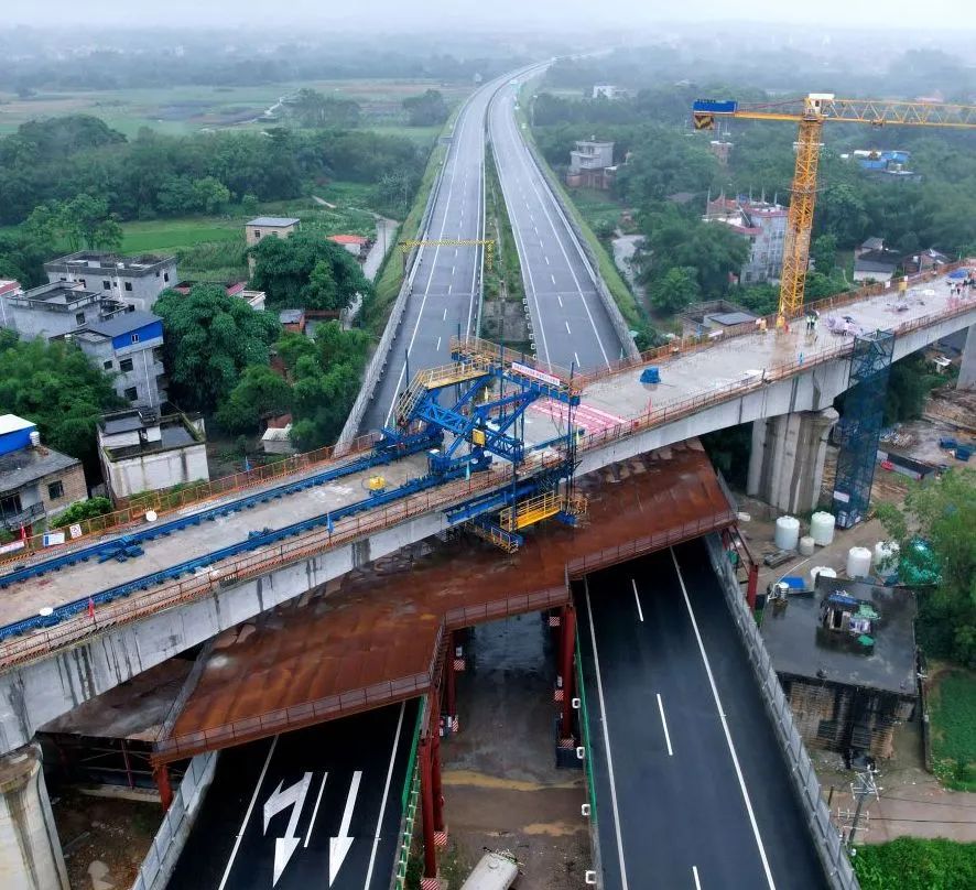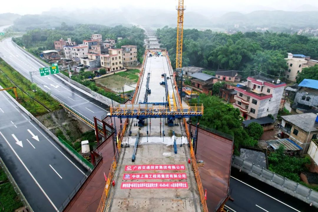 柳梧铁路4标项目金田跨平武高速公路连续梁顺利合龙。
