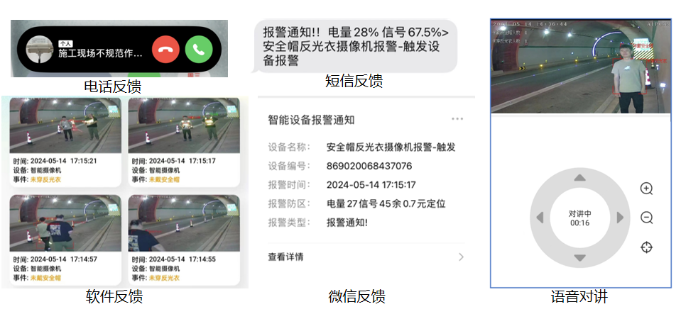 为方便监管人员与现场人员的沟通,该装置还配备了实时对讲功能,使得远程指导和警示变得更加高效。此外,一旦检测到违规作业,该装置能够通过电话、短信、微信和软件推送等多种方式,将信息及时反馈给监管人员,确保安全监管无死角。该装置不仅提高了施工现场的安全监管效率,还极大地降低了事故风险,助力高速公路智能化管理,不断提升高速公路的运营水平和服务质量。