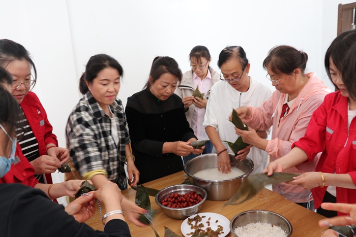 活动中,欢声笑语充满了整个食堂,大家纷纷撸起袖子熟练地将粽叶弯折、装米、填入红枣葡萄干,再用绳子将粽子扎捆起来。一颗颗饱满的粽子饱含着职工们对生活的热情与祝福,大家有的言传身教耐心讲解包粽子的手法,有的唠着家常诉说着心里话,现场沉浸在一派轻松愉悦、祥和安康的氛围之中。随后,分局党支部书记向大家现场讲述了“端午节”的由来、爱国诗人屈原的生平事迹,带领在场职工们共同追忆先贤,将中华优秀传统文化与爱国主义教育相结合,大家伴随着粽叶的清香共同感受浓郁的家国情怀,对“端午节”的认知再次得到升华。